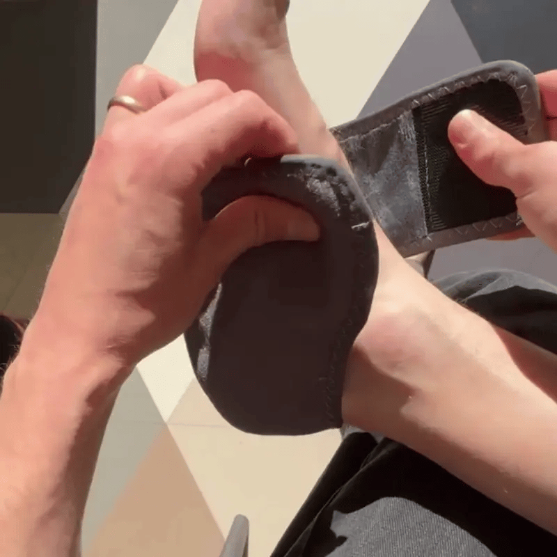 Place the device around your feet or ankles and adjust the straps for a snug, comfortable fit.