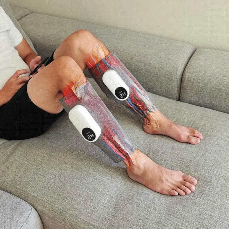 The 3-in-1 system combines compression, heat, and deep massage — techniques rooted in physiotherapy to stimulate circulation, drain excess fluid, and ease muscular tension. Studies on pneumatic compression and thermal therapy show measurable improvements in blood flow, reduced swelling, and faster muscle recovery with consistent use — helping your legs feel lighter, stronger, and pain-free again.